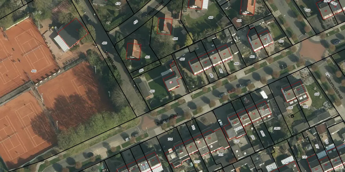 Het perceel waarop Jupiterstraat 70-B staat heeft een oppervlakte van 573 m². Dit is een groot perceel. De perceeloppervlakte wordt geregistreerd door het Kadaster. Gedetailleerde informatie over de maten van dit perceel kunt u vinden in het rapport Kadastrale kaart met maatvoering van Jupiterstraat 70-B.