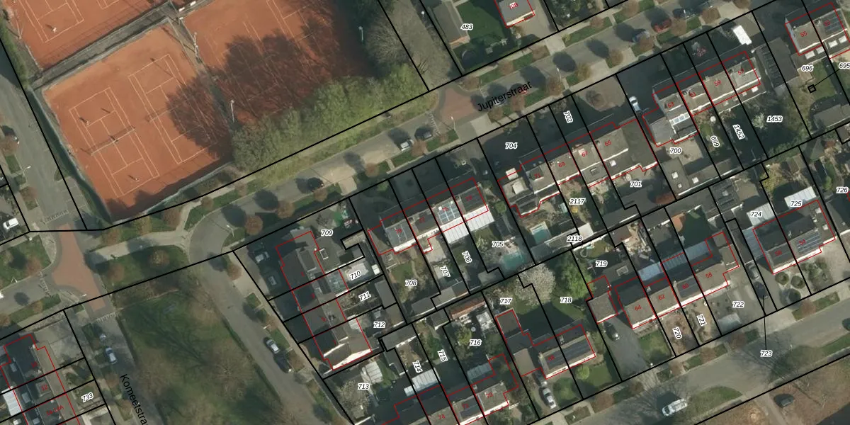 Jupiterstraat 77 is gelegen op kadastraal perceel BSM02G707. Deze kadastrale aanduiding is uniek en wordt gebruikt door het Kadaster om eigendomsrechten en andere zakelijke rechten vast te leggen. Het perceel maakt onderdeel uit van de kadastrale gemeente Brunssum.