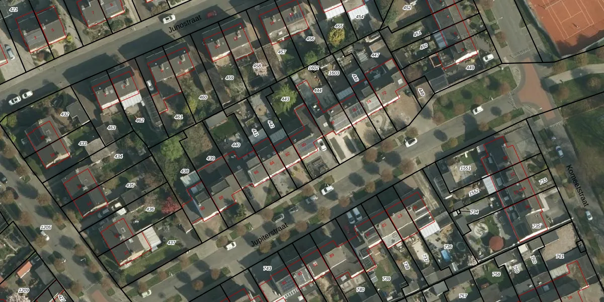 Het perceel waarop Jupiterstraat 80 staat heeft een oppervlakte van 333 m². Dit is een groot perceel. De perceeloppervlakte wordt geregistreerd door het Kadaster. Gedetailleerde informatie over de maten van dit perceel kunt u vinden in het rapport Kadastrale kaart met maatvoering van Jupiterstraat 80.