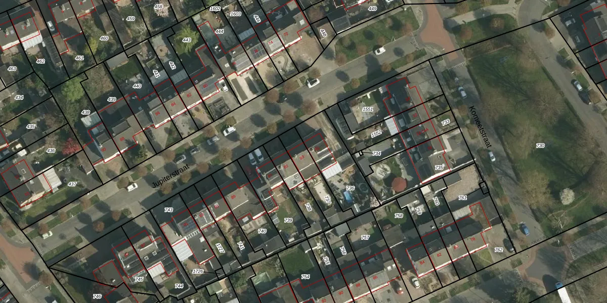 Het perceel waarop Jupiterstraat 83 staat heeft een oppervlakte van 222 m². Dit is een middelgroot perceel. De perceeloppervlakte wordt geregistreerd door het Kadaster. Gedetailleerde informatie over de maten van dit perceel kunt u vinden in het rapport Kadastrale kaart met maatvoering van Jupiterstraat 83.