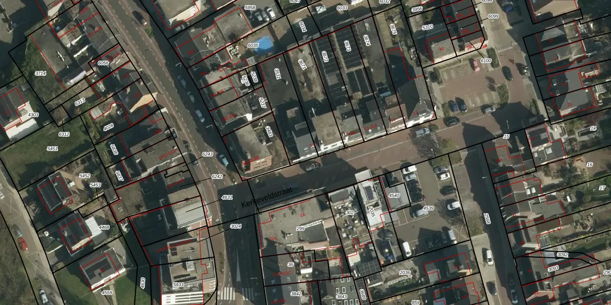Gebruik de zoekbalk of klik op een perceel voor informatie over de adressen binnen dit perceel.