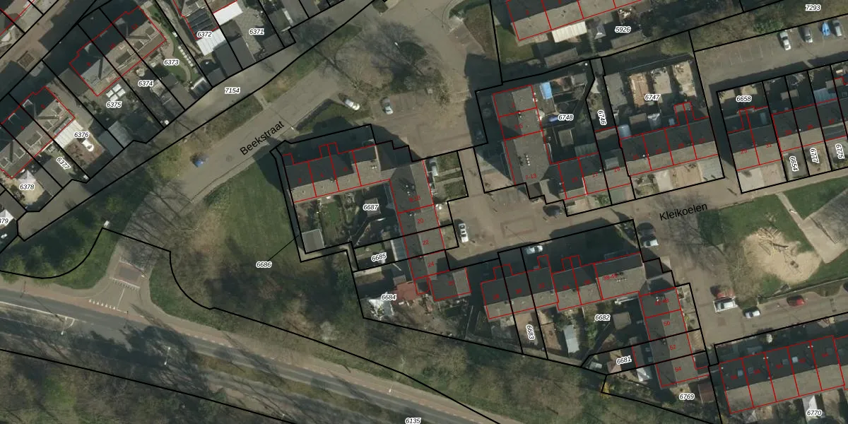 Kleikoelen 20 is gelegen op kadastraal perceel BSM02A6687. Deze kadastrale aanduiding is uniek en wordt gebruikt door het Kadaster om eigendomsrechten en andere zakelijke rechten vast te leggen. Het perceel maakt onderdeel uit van de kadastrale gemeente Brunssum.