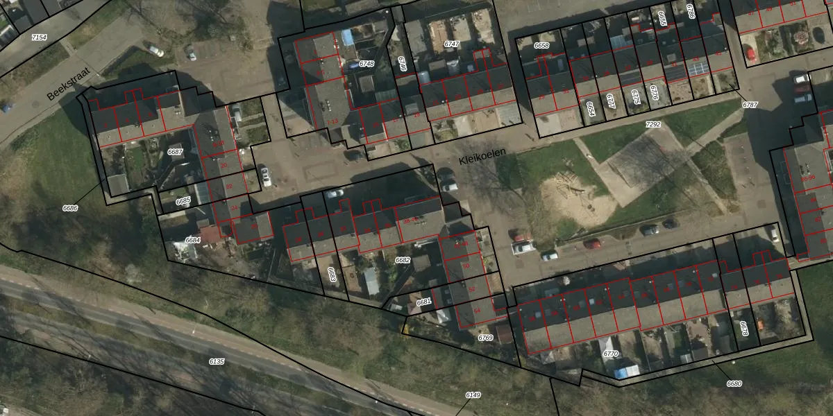 Het perceel waarop Kleikoelen 38 staat heeft een oppervlakte van 927 m². Dit is een groot perceel. De perceeloppervlakte wordt geregistreerd door het Kadaster. Gedetailleerde informatie over de maten van dit perceel kunt u vinden in het rapport Kadastrale kaart met maatvoering van Kleikoelen 38.