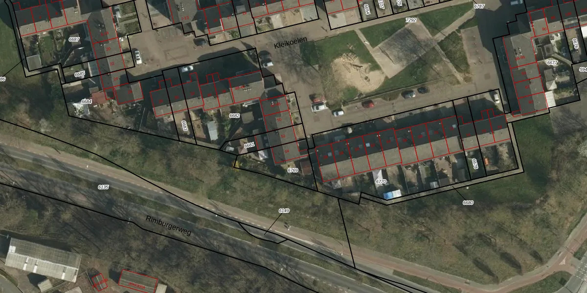 Kleikoelen 54 is gelegen op kadastraal perceel BSM02A6769. Deze kadastrale aanduiding is uniek en wordt gebruikt door het Kadaster om eigendomsrechten en andere zakelijke rechten vast te leggen. Het perceel maakt onderdeel uit van de kadastrale gemeente Brunssum.