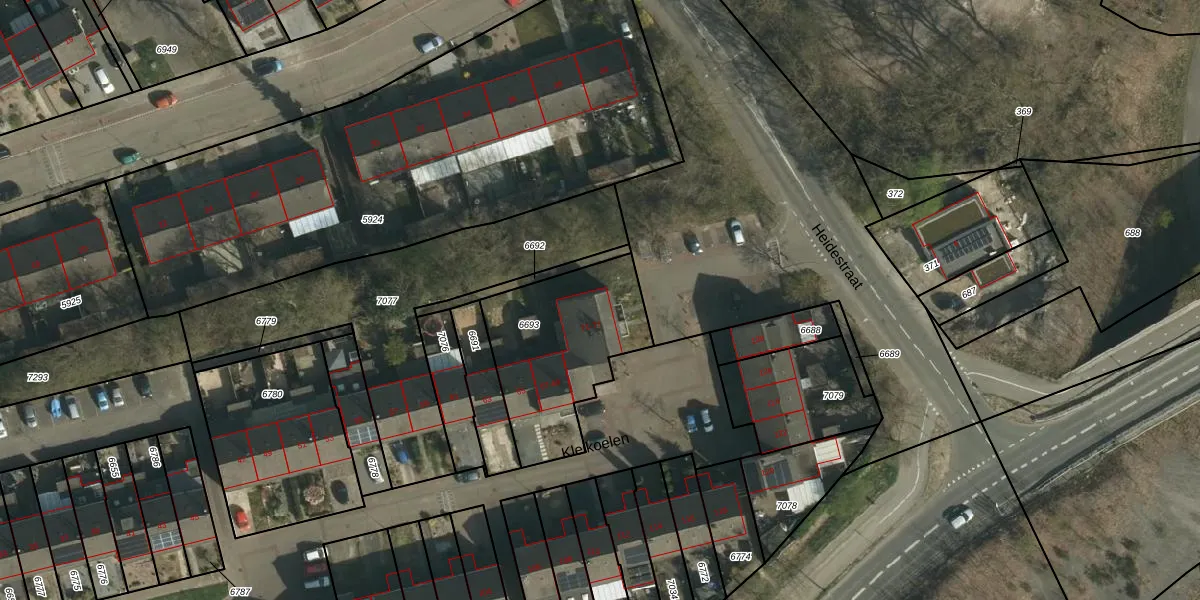 Het perceel waarop Kleikoelen 77 staat heeft een oppervlakte van 597 m². Dit is een groot perceel. De perceeloppervlakte wordt geregistreerd door het Kadaster. Gedetailleerde informatie over de maten van dit perceel kunt u vinden in het rapport Kadastrale kaart met maatvoering van Kleikoelen 77.