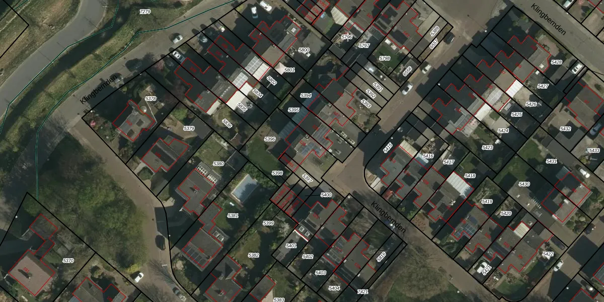 Het perceel waarop Klingbemden 123 staat heeft een oppervlakte van 415 m². Dit is een groot perceel. De perceeloppervlakte wordt geregistreerd door het Kadaster. Gedetailleerde informatie over de maten van dit perceel kunt u vinden in het rapport Kadastrale kaart met maatvoering van Klingbemden 123.
