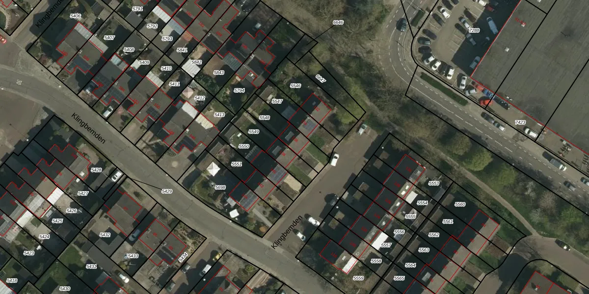 Gebruik de zoekbalk of klik op een perceel voor informatie over de adressen binnen dit perceel.