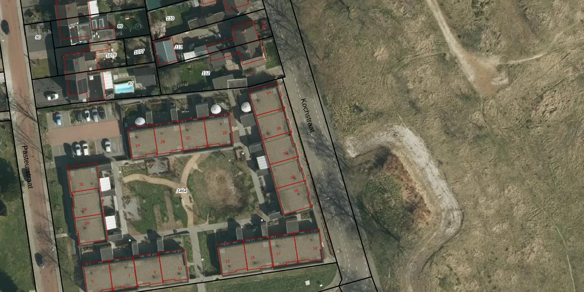Het perceel waarop Kochstraat 1-C staat heeft een oppervlakte van 5904 m². Dit is een zeer groot perceel. De perceeloppervlakte wordt geregistreerd door het Kadaster. Gedetailleerde informatie over de maten van dit perceel kunt u vinden in het rapport Kadastrale kaart met maatvoering van Kochstraat 1-C.