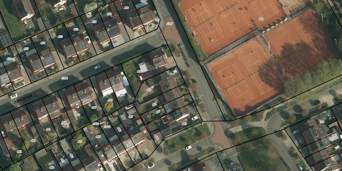 Gebruik de zoekbalk of klik op een perceel voor informatie over de adressen binnen dit perceel.