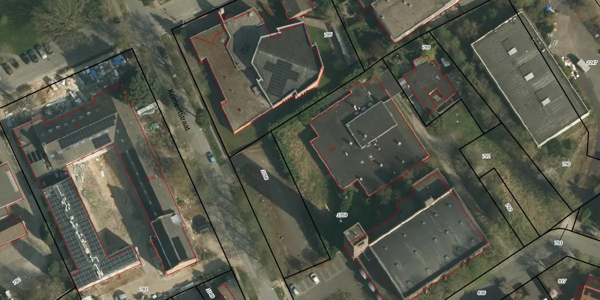 Het perceel waarop Komeetstraat 21-A staat heeft een oppervlakte van 4905 m². Dit is een zeer groot perceel. De perceeloppervlakte wordt geregistreerd door het Kadaster. Gedetailleerde informatie over de maten van dit perceel kunt u vinden in het rapport Kadastrale kaart met maatvoering van Komeetstraat 21-A.