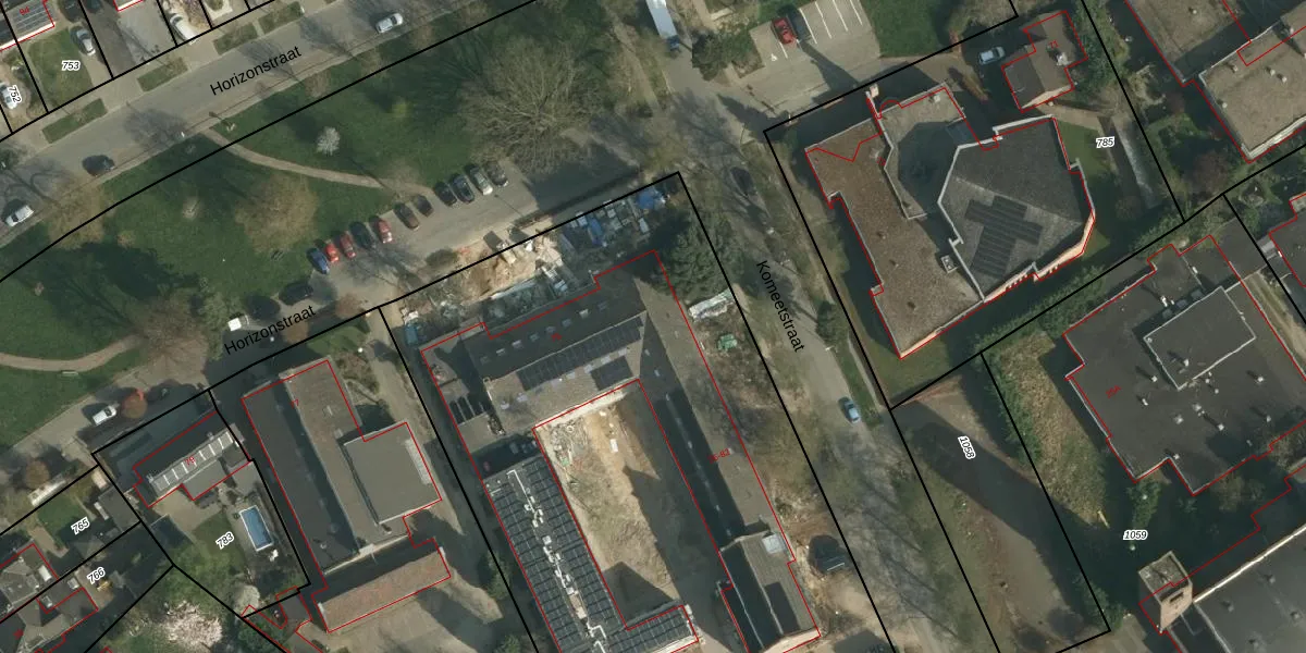 Het perceel waarop Komeetstraat 40 staat heeft een oppervlakte van 4035 m². Dit is een zeer groot perceel. De perceeloppervlakte wordt geregistreerd door het Kadaster. Gedetailleerde informatie over de maten van dit perceel kunt u vinden in het rapport Kadastrale kaart met maatvoering van Komeetstraat 40.