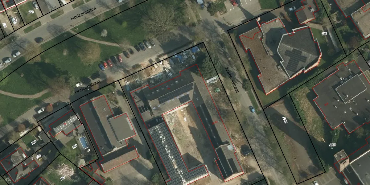 Het perceel waarop Komeetstraat 44 staat heeft een oppervlakte van 4035 m². Dit is een zeer groot perceel. De perceeloppervlakte wordt geregistreerd door het Kadaster. Gedetailleerde informatie over de maten van dit perceel kunt u vinden in het rapport Kadastrale kaart met maatvoering van Komeetstraat 44.