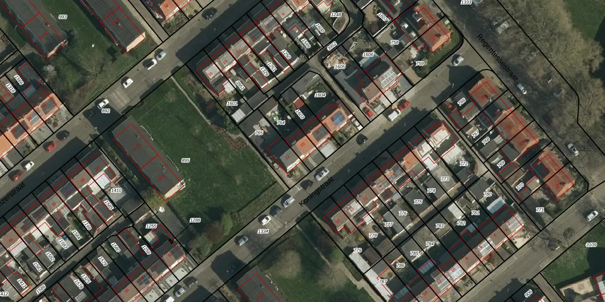 Het perceel waarop Koningstraat 10 staat heeft een oppervlakte van 178 m². Dit is een middelgroot perceel. De perceeloppervlakte wordt geregistreerd door het Kadaster. Gedetailleerde informatie over de maten van dit perceel kunt u vinden in het rapport Kadastrale kaart met maatvoering van Koningstraat 10.