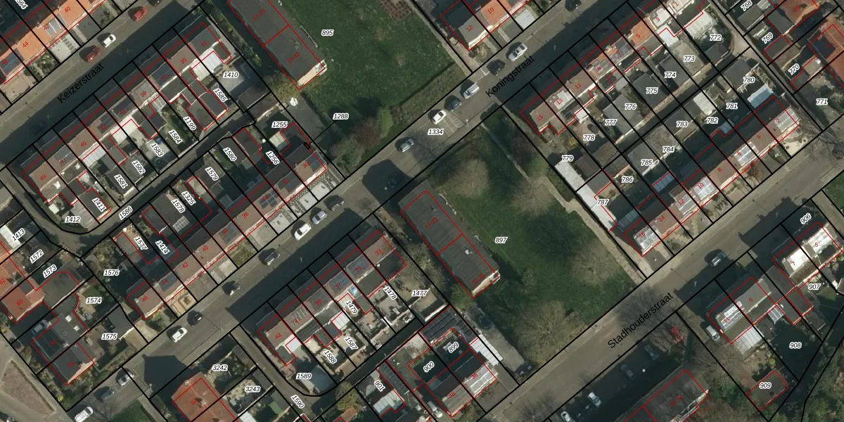 Het perceel waarop Koningstraat 21 staat heeft een oppervlakte van 2118 m². Dit is een zeer groot perceel. De perceeloppervlakte wordt geregistreerd door het Kadaster. Gedetailleerde informatie over de maten van dit perceel kunt u vinden in het rapport Kadastrale kaart met maatvoering van Koningstraat 21.