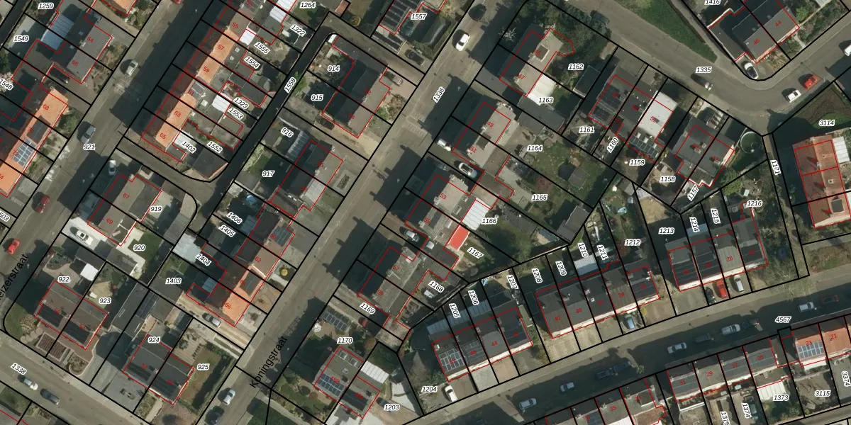 Het perceel waarop Koningstraat 55 staat heeft een oppervlakte van 299 m². Dit is een middelgroot perceel. De perceeloppervlakte wordt geregistreerd door het Kadaster. Gedetailleerde informatie over de maten van dit perceel kunt u vinden in het rapport Kadastrale kaart met maatvoering van Koningstraat 55.