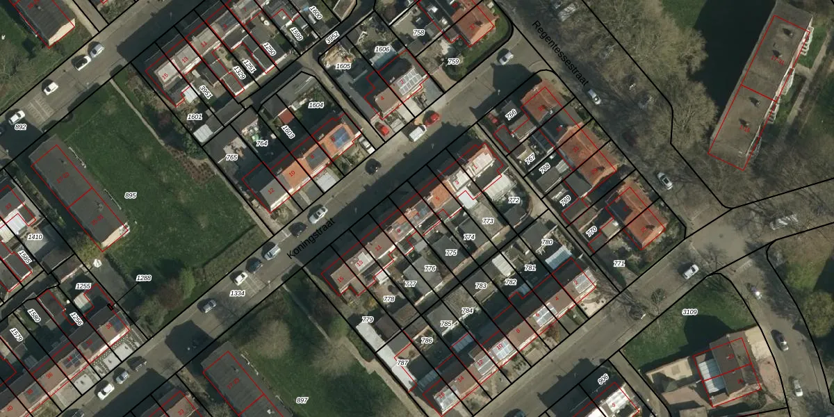 Het perceel waarop Koningstraat 7 staat heeft een oppervlakte van 165 m². Dit is een middelgroot perceel. De perceeloppervlakte wordt geregistreerd door het Kadaster. Gedetailleerde informatie over de maten van dit perceel kunt u vinden in het rapport Kadastrale kaart met maatvoering van Koningstraat 7.
