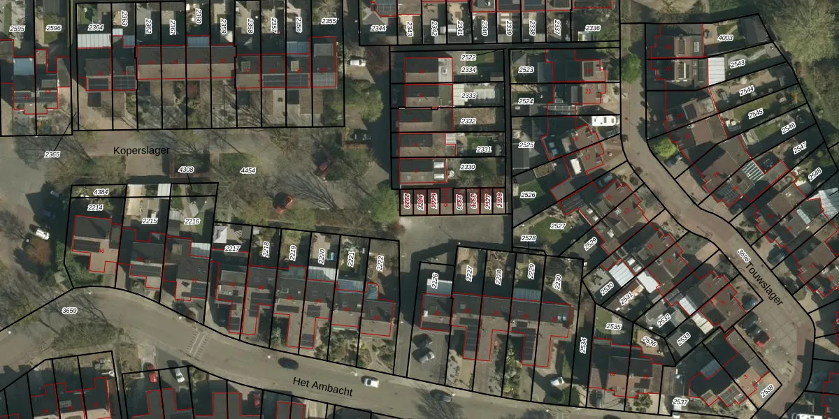 Gebruik de zoekbalk of klik op een perceel voor informatie over de adressen binnen dit perceel.