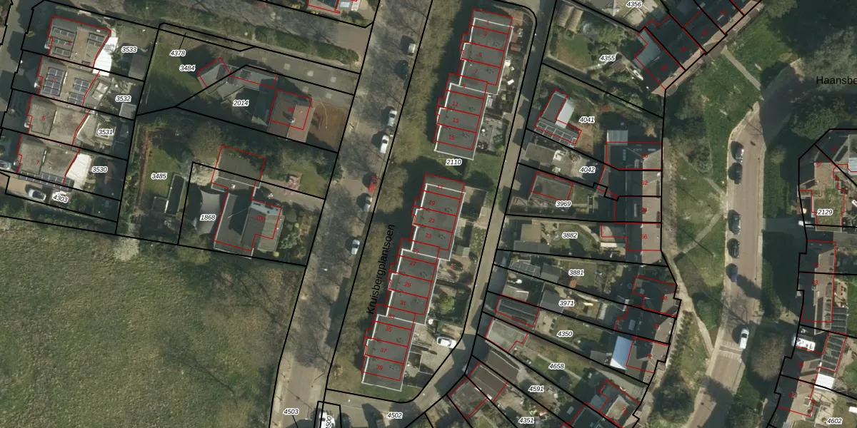 Het perceel waarop Kruisbergplantsoen 21 staat heeft een oppervlakte van 2475 m². Dit is een zeer groot perceel. De perceeloppervlakte wordt geregistreerd door het Kadaster. Gedetailleerde informatie over de maten van dit perceel kunt u vinden in het rapport Kadastrale kaart met maatvoering van Kruisbergplantsoen 21.