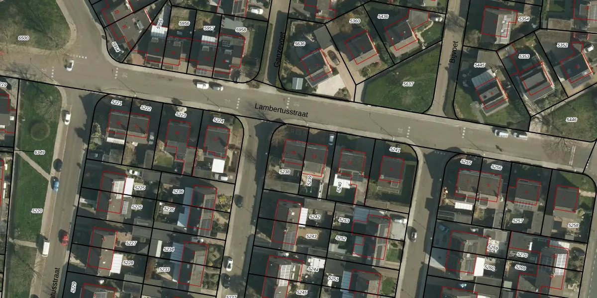 Het perceel waarop Lambertusstraat 15 staat heeft een oppervlakte van 271 m². Dit is een middelgroot perceel. De perceeloppervlakte wordt geregistreerd door het Kadaster. Gedetailleerde informatie over de maten van dit perceel kunt u vinden in het rapport Kadastrale kaart met maatvoering van Lambertusstraat 15.