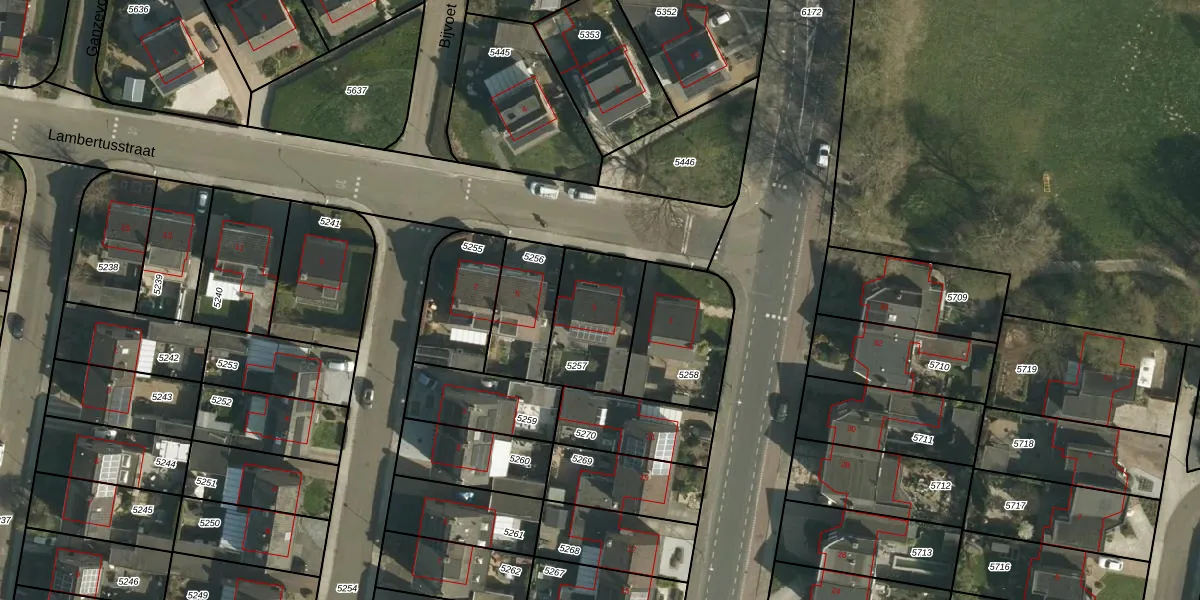 Het perceel waarop Lambertusstraat 3 staat heeft een oppervlakte van 302 m². Dit is een groot perceel. De perceeloppervlakte wordt geregistreerd door het Kadaster. Gedetailleerde informatie over de maten van dit perceel kunt u vinden in het rapport Kadastrale kaart met maatvoering van Lambertusstraat 3.