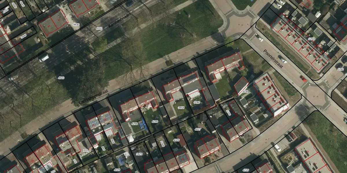 Het perceel waarop Landsheerstraat 13 staat heeft een oppervlakte van 420 m². Dit is een groot perceel. De perceeloppervlakte wordt geregistreerd door het Kadaster. Gedetailleerde informatie over de maten van dit perceel kunt u vinden in het rapport Kadastrale kaart met maatvoering van Landsheerstraat 13.