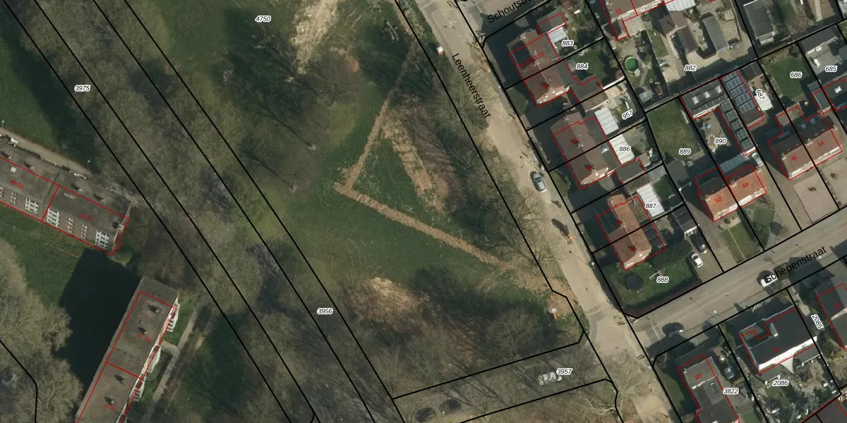 Het perceel waarop Leenheerstraat 69 staat heeft een oppervlakte van 9310 m². Dit is een zeer groot perceel. De perceeloppervlakte wordt geregistreerd door het Kadaster. Gedetailleerde informatie over de maten van dit perceel kunt u vinden in het rapport Kadastrale kaart met maatvoering van Leenheerstraat 69.