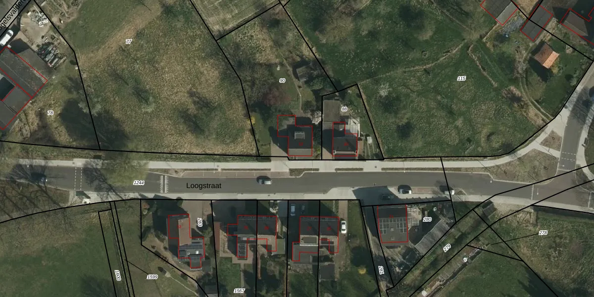 Het perceel waarop Loogstraat 12 staat heeft een oppervlakte van 1245 m². Dit is een zeer groot perceel. De perceeloppervlakte wordt geregistreerd door het Kadaster. Gedetailleerde informatie over de maten van dit perceel kunt u vinden in het rapport Kadastrale kaart met maatvoering van Loogstraat 12.