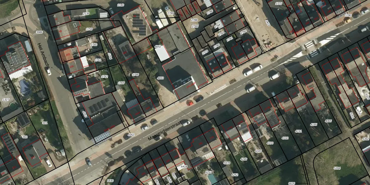 Het perceel waarop Maastrichterstraat 160-D staat heeft een oppervlakte van 826 m². Dit is een groot perceel. De perceeloppervlakte wordt geregistreerd door het Kadaster. Gedetailleerde informatie over de maten van dit perceel kunt u vinden in het rapport Kadastrale kaart met maatvoering van Maastrichterstraat 160-D.