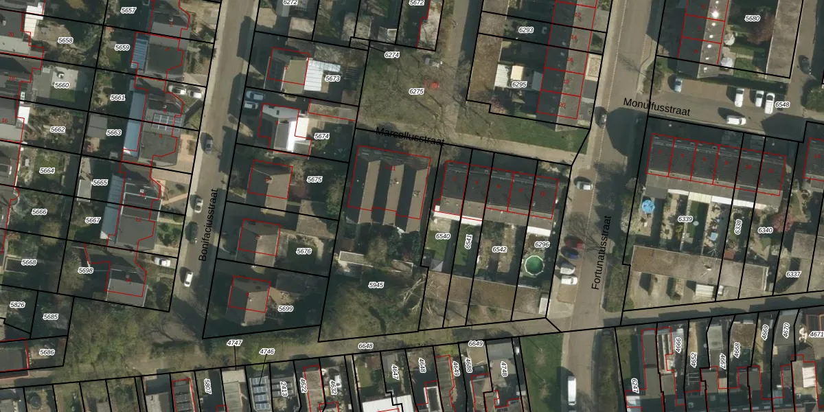 Het perceel waarop Marcellusstraat 1 staat heeft een oppervlakte van 1090 m². Dit is een zeer groot perceel. De perceeloppervlakte wordt geregistreerd door het Kadaster. Gedetailleerde informatie over de maten van dit perceel kunt u vinden in het rapport Kadastrale kaart met maatvoering van Marcellusstraat 1.