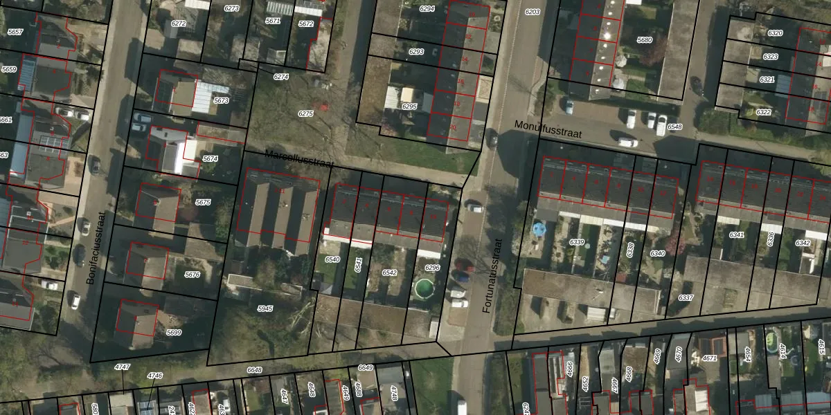 Het perceel waarop Marcellusstraat 8 staat heeft een oppervlakte van 448 m². Dit is een groot perceel. De perceeloppervlakte wordt geregistreerd door het Kadaster. Gedetailleerde informatie over de maten van dit perceel kunt u vinden in het rapport Kadastrale kaart met maatvoering van Marcellusstraat 8.