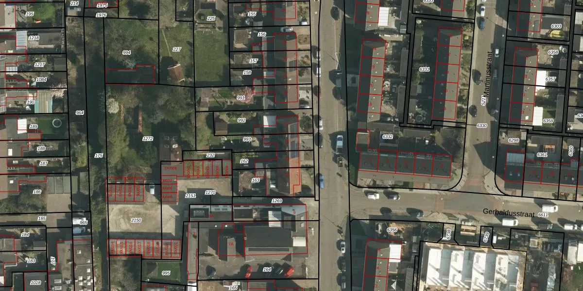 Gebruik de zoekbalk of klik op een perceel voor informatie over de adressen binnen dit perceel.