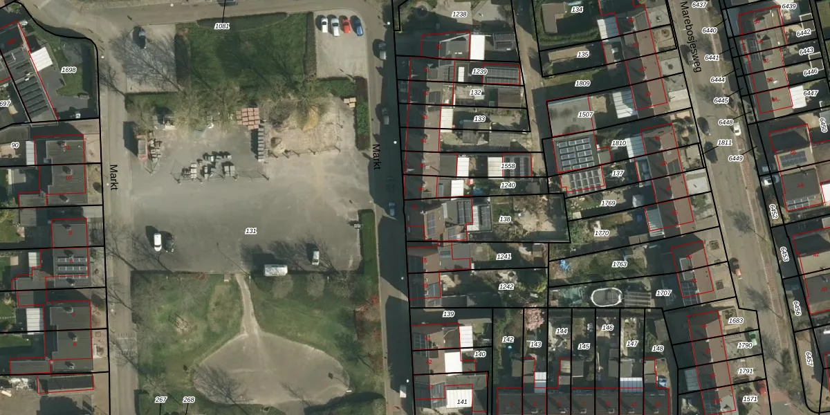 Het perceel waarop Markt 37 staat heeft een oppervlakte van 428 m². Dit is een groot perceel. De perceeloppervlakte wordt geregistreerd door het Kadaster. Gedetailleerde informatie over de maten van dit perceel kunt u vinden in het rapport Kadastrale kaart met maatvoering van Markt 37.
