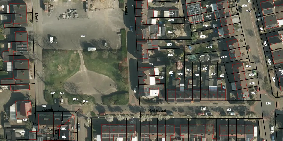Het perceel waarop Markt 41 staat heeft een oppervlakte van 194 m². Dit is een middelgroot perceel. De perceeloppervlakte wordt geregistreerd door het Kadaster. Gedetailleerde informatie over de maten van dit perceel kunt u vinden in het rapport Kadastrale kaart met maatvoering van Markt 41.
