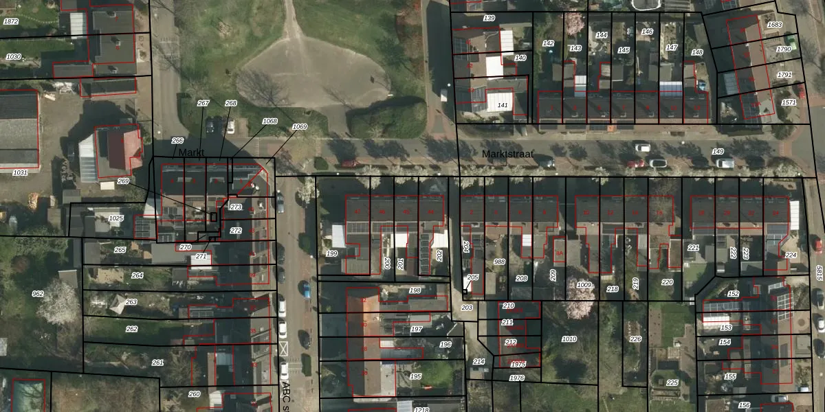 Gebruik de zoekbalk of klik op een perceel voor informatie over de adressen binnen dit perceel.