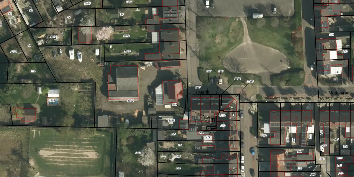 Het perceel waarop Markt 5 staat heeft een oppervlakte van 2480 m². Dit is een zeer groot perceel. De perceeloppervlakte wordt geregistreerd door het Kadaster. Gedetailleerde informatie over de maten van dit perceel kunt u vinden in het rapport Kadastrale kaart met maatvoering van Markt 5.