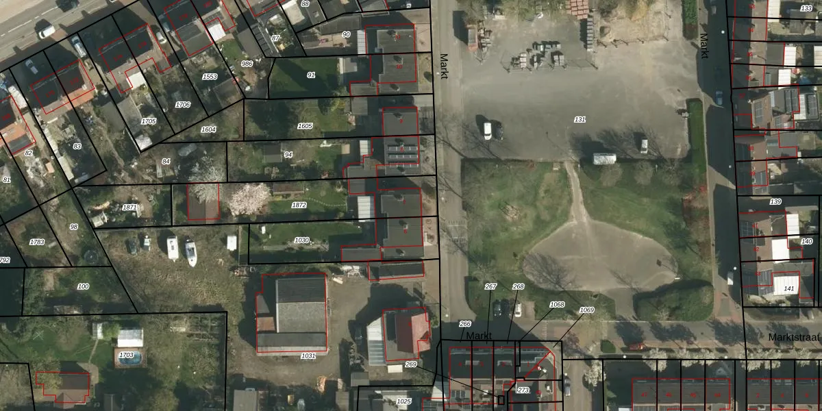 Het perceel waarop Markt 7 staat heeft een oppervlakte van 650 m². Dit is een groot perceel. De perceeloppervlakte wordt geregistreerd door het Kadaster. Gedetailleerde informatie over de maten van dit perceel kunt u vinden in het rapport Kadastrale kaart met maatvoering van Markt 7.