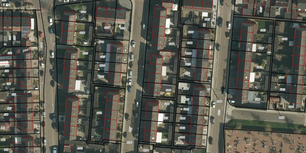 Het perceel waarop Martinusstraat 13 staat heeft een oppervlakte van 1235 m². Dit is een zeer groot perceel. De perceeloppervlakte wordt geregistreerd door het Kadaster. Gedetailleerde informatie over de maten van dit perceel kunt u vinden in het rapport Kadastrale kaart met maatvoering van Martinusstraat 13.