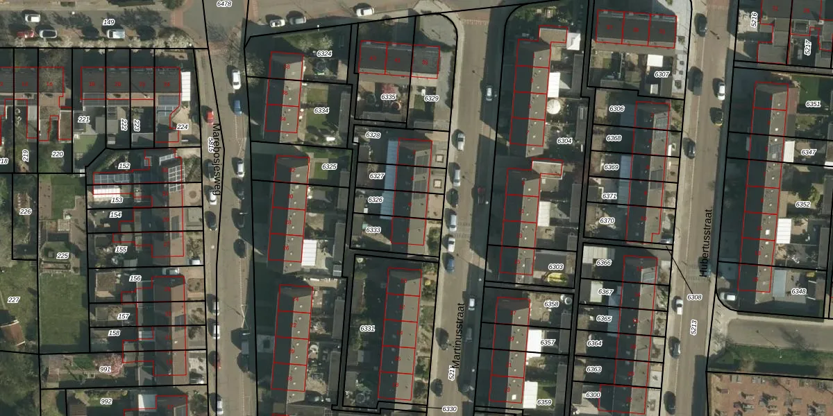 Gebruik de zoekbalk of klik op een perceel voor informatie over de adressen binnen dit perceel.