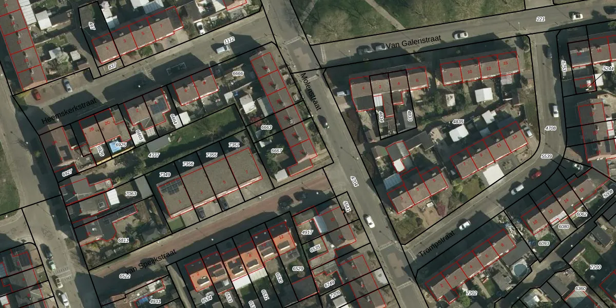 Het perceel waarop Molenstraat 17 staat heeft een oppervlakte van 346 m². Dit is een groot perceel. De perceeloppervlakte wordt geregistreerd door het Kadaster. Gedetailleerde informatie over de maten van dit perceel kunt u vinden in het rapport Kadastrale kaart met maatvoering van Molenstraat 17.