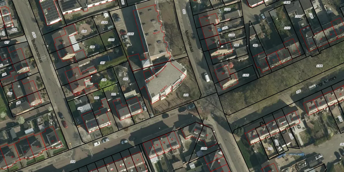 Het perceel waarop Molenstraat 97-D staat heeft een oppervlakte van 901 m². Dit is een groot perceel. De perceeloppervlakte wordt geregistreerd door het Kadaster. Gedetailleerde informatie over de maten van dit perceel kunt u vinden in het rapport Kadastrale kaart met maatvoering van Molenstraat 97-D.