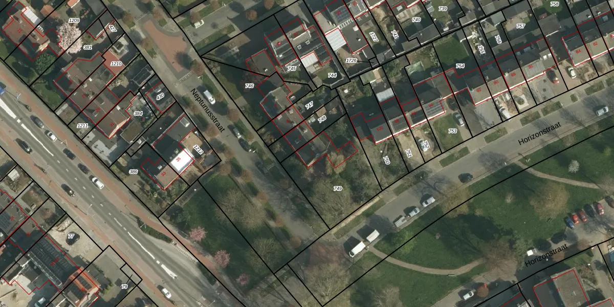 Het perceel waarop Neptunusstraat 2 staat heeft een oppervlakte van 651 m². Dit is een groot perceel. De perceeloppervlakte wordt geregistreerd door het Kadaster. Gedetailleerde informatie over de maten van dit perceel kunt u vinden in het rapport Kadastrale kaart met maatvoering van Neptunusstraat 2.