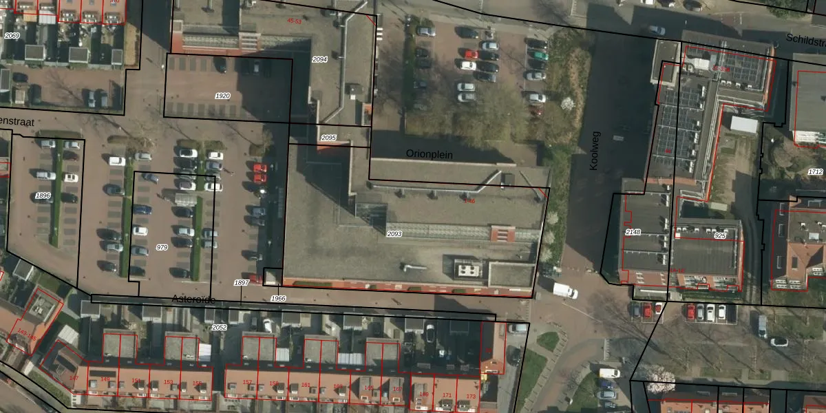 Het perceel waarop Orionplein 29 staat heeft een oppervlakte van 1825 m². Dit is een zeer groot perceel. De perceeloppervlakte wordt geregistreerd door het Kadaster. Gedetailleerde informatie over de maten van dit perceel kunt u vinden in het rapport Kadastrale kaart met maatvoering van Orionplein 29.
