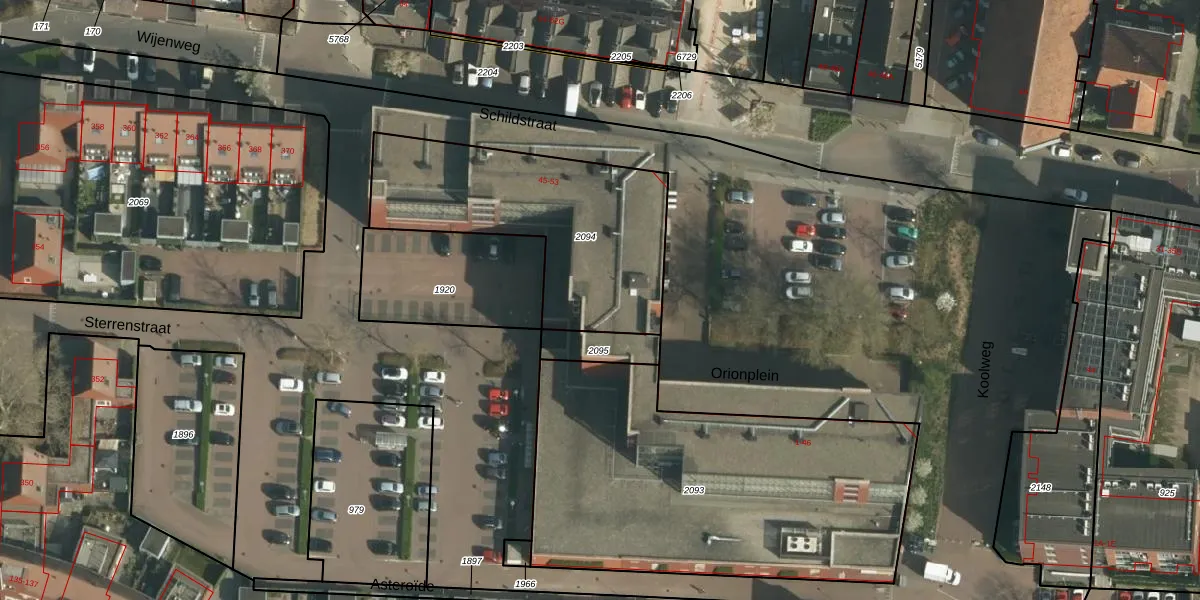Het perceel waarop Orionplein 38 staat heeft een oppervlakte van 985 m². Dit is een groot perceel. De perceeloppervlakte wordt geregistreerd door het Kadaster. Gedetailleerde informatie over de maten van dit perceel kunt u vinden in het rapport Kadastrale kaart met maatvoering van Orionplein 38.