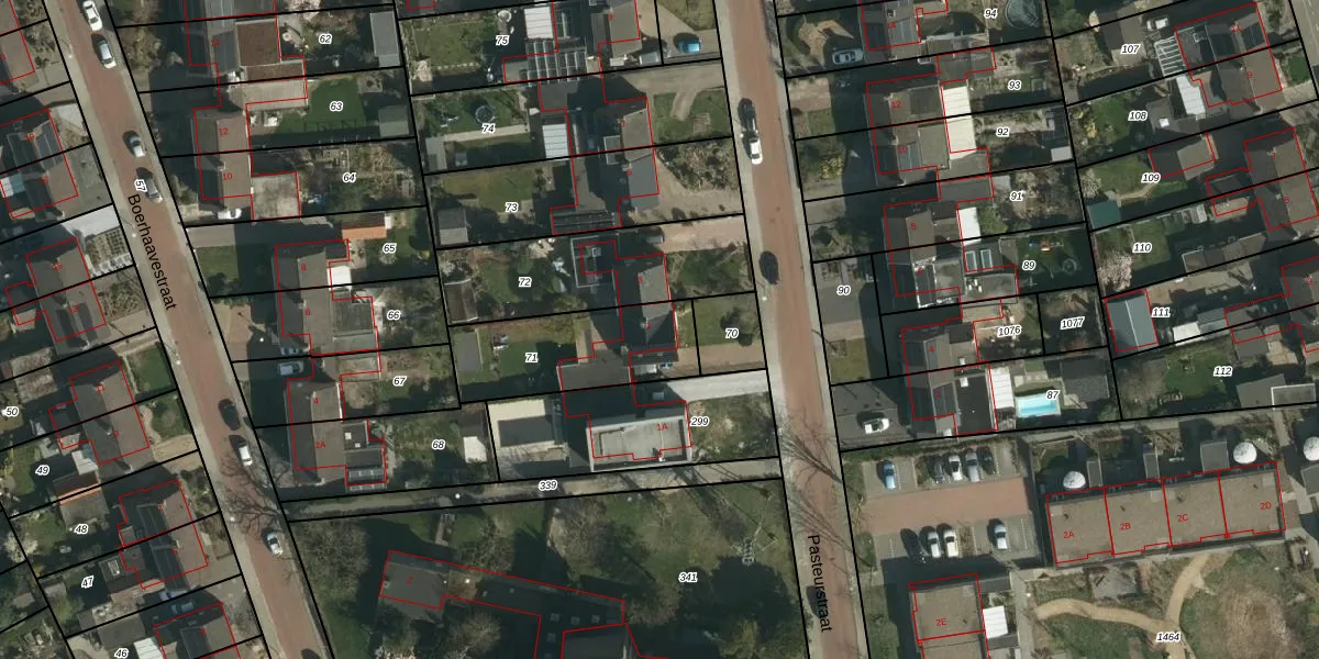 Het perceel waarop Pasteurstraat 1 staat heeft een oppervlakte van 433 m². Dit is een groot perceel. De perceeloppervlakte wordt geregistreerd door het Kadaster. Gedetailleerde informatie over de maten van dit perceel kunt u vinden in het rapport Kadastrale kaart met maatvoering van Pasteurstraat 1.