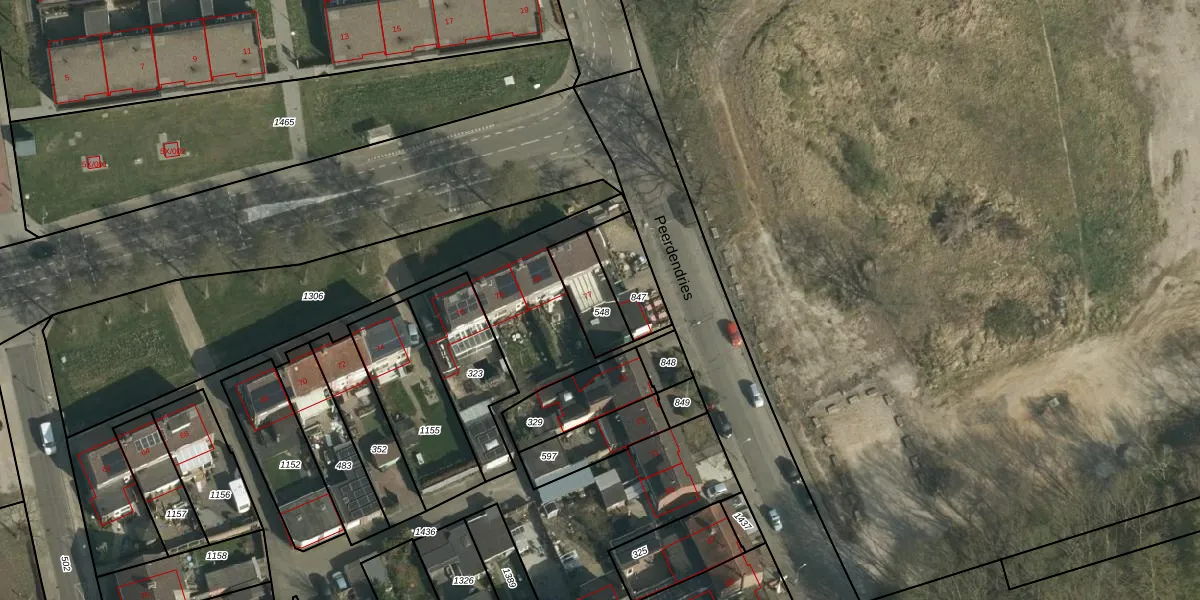 Gebruik de zoekbalk of klik op een perceel voor informatie over de adressen binnen dit perceel.