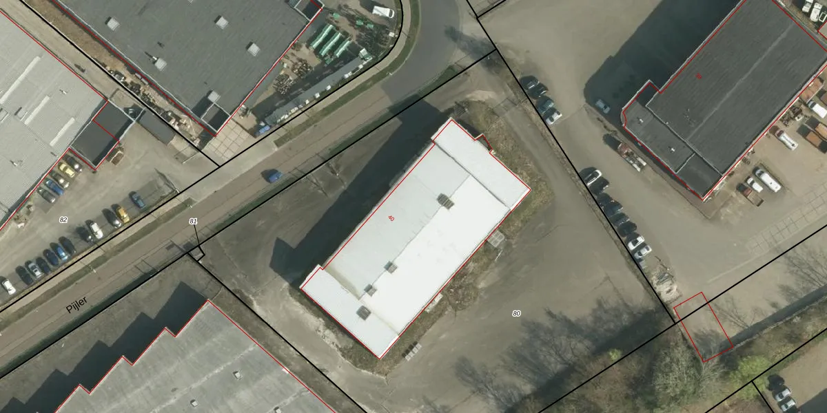 Het perceel waarop Pijler 40 staat heeft een oppervlakte van 6227 m². Dit is een zeer groot perceel. De perceeloppervlakte wordt geregistreerd door het Kadaster. Gedetailleerde informatie over de maten van dit perceel kunt u vinden in het rapport Kadastrale kaart met maatvoering van Pijler 40.