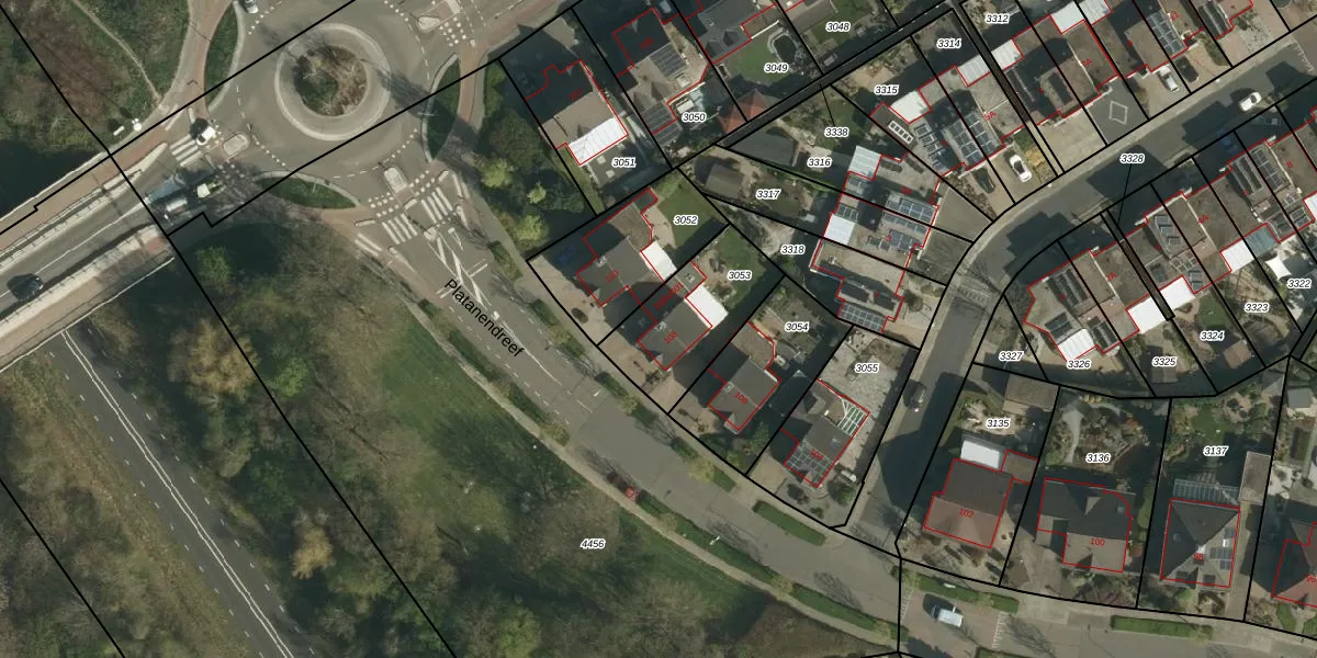 Platanendreef 108 is gelegen op kadastraal perceel BSM02D3053. Deze kadastrale aanduiding is uniek en wordt gebruikt door het Kadaster om eigendomsrechten en andere zakelijke rechten vast te leggen. Het perceel maakt onderdeel uit van de kadastrale gemeente Brunssum.