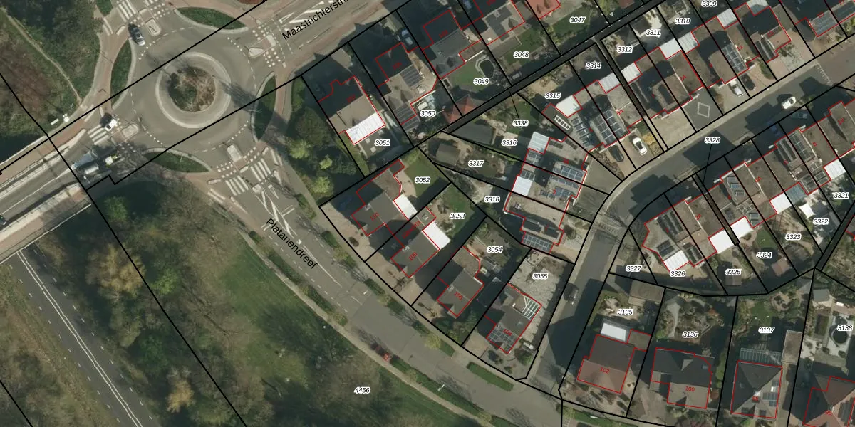 Platanendreef 108-X-001 is gelegen op kadastraal perceel BSM02D3053. Deze kadastrale aanduiding is uniek en wordt gebruikt door het Kadaster om eigendomsrechten en andere zakelijke rechten vast te leggen. Het perceel maakt onderdeel uit van de kadastrale gemeente Brunssum.