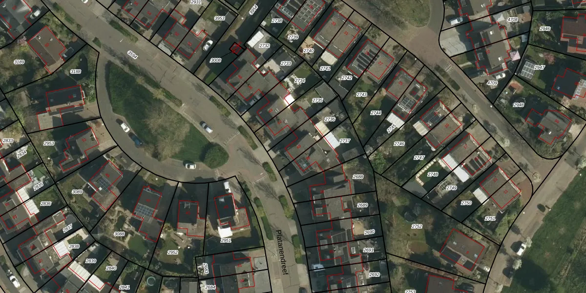 Gebruik de zoekbalk of klik op een perceel voor informatie over de adressen binnen dit perceel.
