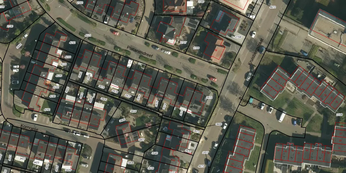Gebruik de zoekbalk of klik op een perceel voor informatie over de adressen binnen dit perceel.